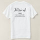 Promotional t-shirt for your business printed with your big logo and your custom text across the chest. Add your social media handle beneath black social media icons on the back.