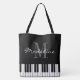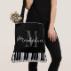 Large monogram shoulder tote bag with piano keys. Custom tote bags for music teacher and students. Elegant monogrammed design with stylish typography and personalised name initial letter. Classy gift idea for pianist, piano instructor, piano player, performer, musician, music school lessons, colleague, co worker, kids etc. Classical keyboard instrument design for men, women and kids. Monogrammed gift ideas for Birthday, Christmas Holidays and more.