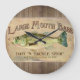 Large Mouth Bass Fisherman Cabin Wood Boards Clock
