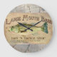 Large Mouth Bass Lakeside Fishing Cabin Wood Clock