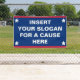 One of the most important things for rallying your community to support your cause is to make sure your message is seen and heard. Easily personalise this durable outdoor banner with your custom text. You can customise the design to make this banner your own unique expression of your cause. Available in outdoor or indoor banner. No minimum order quantity and no setup fee.