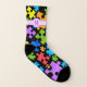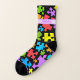 Large Pastel Colour Autism Puzzle Pieces on BLACK Socks