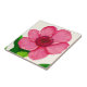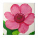 Ceramic tile in a closeup image of an anemone, in shades of coral pink, with a burgundy centre, and emerald green leaves