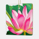 Large Pink Water Lily with Emerald Green Leaves Ceramic Ornament