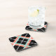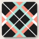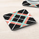 Coaster set with large plaid print in mint green, coral orange, black, and white.