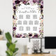 Elegant floral 10-table seating chart to help your guests find their seats in style. A lush border of mauve pink and deep purple roses surrounds the wedding couple names and the table assignments. There is lots of greenery included in the design which gives it a very modern vibe, a bit Boho Chic. Please find your seat is written in a classic serif font. The wedding couple names is written in a trendy and very popular font. All of the text can be changed, including the size, font and colour. This large wedding seating chart is part of the Mauve Rose collection. It contains many DIY templates that allow you to easily personalise your wedding ceremony or reception. You should be able to see a link on this page. Please contact me if you don't or need help with a product.