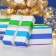 A wrapping paper designed with a striped pattern with bright rainbow colors and white in large size.
