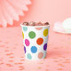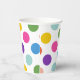 Large rainbow coloured dots of red, pink, yellow, green, aqua, blue and violet give this paper cup a cute vibe and coordinate seamlessly with the Party Safari Animal birthday suite for a cohesive but not overly matchy-matchy look.