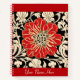 Journal in a large, red, camellia flower, in an Art Nouveau inspired style, with a floral background in beige on black