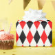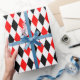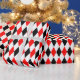 A wrapping paper designed with a red, black and white harlequin pattern in large size. You can change the white for a different colour in an easy way.