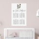 Chic and elegant. A family crest with monogram and your last name sits at the top of this simple 4-Table seating chart. Deep burgundy red and white flowers decorate the crest. Your monogram is in the crest and your last name is on the banner below. Please Find Your Seat and the bride and groom names are at the top. The Please Find Your Seat is written in a classic serif font, while your names are written in a popular and trending script. Very easy to change the template text to your guest names. This wedding seating chart is part of the Red Floral Crest collection. It contains main signs to let you easily personalise your wedding ceremony and reception. You should see a link to it on this page. If you don't see the link or you need help with an item, please contact me.