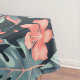 Large-scale tropical florals and leaves in vivid teal and coral for a bold, modern look.