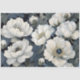 Large scale White poppies decoupage Tissue Paper for DIY craft projects, furniture and gift wrapping. White poppies with green leave on black background.