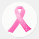 Sticker shown in a large round shape with a pink ribbon survive print. Customise this item or buy as is. Breast Cancer Awareness