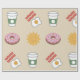 This cheery and whimsical wrapping paper is sure to bring a smile! Complete with a coffee mug, eggs & bacon, smiling sun, and a doughnut with sprinkles! Use at your next brunch party as a table runner or gift wrap for any celebration!