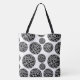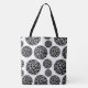 This lovely tote bag is shown in a black and white dots print.