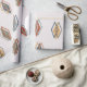 This wrapping paper has a mid-century modern design of sets of two diamond outlines with one solid diamond, in greys, gold, orange, blue, and tan, scattered about the design on a field of off-white. If you like the design but prefer different colours, message me.