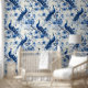 Large Vintage Blue French Chinoiserie Peacock Boho Wallpaper