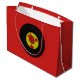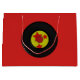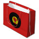 Large, gift bag, with a retro style. Has a Vinyl record, against a red background. Makes any gift look cool!