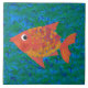 Large Whimsical Fish on Blue Green Background Tile