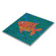 A colourful Large Ceramic Tile, with a cheeky Orange and Yellow Fish on a Deep Blue and Green background, from a whimsical hand-painted paper collage by Judy Adamson. Part of the Posh and Painterly 'Fish in the Sea' collection, this pattern can be adjusted to fit any Tile so you can also change the scale if you wish. You can customise this Tile further by removing the Blue/Green background layer and choosing a plain colour. Alternatively, you can remove the Fish Motif. (Add a wooden frame to use as a Trivet.)