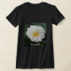 Design features photograph of the face of a white camellia flower. Name of flower in white script typeface. Photo closeup shows intricate detail of stamen, pistil and petals. Shown in photo on black. Shirt is available in multiple colours. This style shirt only.