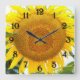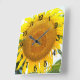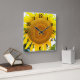Stylish wall clock with black numerals and hands that features the photo image of a large, yellow Sunflower head. A lovely, floral design! Use to decorate a living room, dining room, kitchen, or any other room.