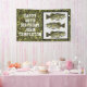 This is a great birthday banner for the avid angler's birthday. Whether the birthday boy or girl is turning eight or forty, the age and name can be personalised. The design features three largemouth bass a black diamond plate background. A rugged birthday banner.