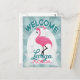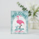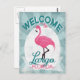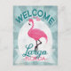 Largo Florida pink flamingo. In vintage travel posters style, it says "Welcome To Largo, Florida" in pink, white and mint green turquoise.