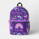 Simple graphic stylized funky boho rainbow backpack of purple, pink, aqua, white and warm light yellow. This is designed for the name and name meaning / definition of Larissa Joyful, bright and kind. Or you can personalize with your own choice of name and name meaning or message in the rainbow. A great custom bag to give as a gift or to take to school or college. Original graphic art Sarah Trett for www.mylittleeden.com and namesense exclusive on Zazzle.