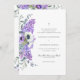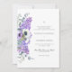 Invitación de boda cristiana en español con flores moradas elegantes, caligrafía y una cruz cristiana.