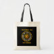Budget Tote Bag natural with black front and black, white and gold concentric-circles design with Y-NOT-ME logo in the middle surrounded by "GO AHEAD YOU CAN DO IT" which is surrounded by "CENTER OF THE UNIVERSE" with "COLUMBIA, MO" at the top and "GO TIGERS!" at the bottom. This design is a shout-out to Columbia, Missouri, a city on the rise.