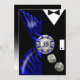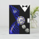 A swanky art deco couple wearing black tie apparel - she's in a low cut, cobalt blue zebra gown and he's chic in a black tuxedo. The centerpiece is a casino chip that contains custom text and tumbling siver dice. Whether you're getting married in Vegas or staying in your home town and throwing a casino themed event, this versatile, trendy invitation is perfect for any special occasion - retirement parties, milestone birthdays, cocktail & dinner parties, rehearsal dinners, wedding receptions, anniversaries, semi-formal and formal events or festive holiday soirees. Easy to personalise, use the "Customise It" button above to add your own text. Matching favour stickers also available. For questions or special requests, please contact the designer: cheryl@cheryldanielsart.com. If this invite is not exactly what you're looking for, all of my products can be custom designed to accommodate your specific needs. "Las Vegas Art Deco Birthday" invitation by Cheryl Daniels © 2014.
