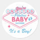 Our fabulous Las Vegas theme pink and blue baby shower baby shower stickers look like the Las Vegas welcome sign but says YOU'RE INVITED TO A FABULOUS BABY SHOWER. Cute little baby feet complete the design. Customisable text and background. Coordinated baby shower invitations, postage, T-shirts and gifts also available. PinkInkArt original!