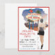 A dynamic bachelorette party invitation that showcases a glamourous black-haired bride-to-be in a chic Las Vegas setting, sipping on a cosmopolitan, with poker chips spilling out of her elegant black clutch. Capture the excitement and energy of the Vegas nightlife to set the tone for an unforgettable celebration!
