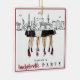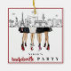 Celebrate your unforgettable Vegas getaway with this chic Las Vegas skyline bachelorette ornament, featuring a glamorous fashion illustration of four women from the waist down — three in classic little black dresses and heels, and the bride-to-be in a white dress and shoes. Personalize the front with the bride’s name and bachelorette party details, and add a special message on the back for the perfect keepsake. Designed for bridal squads who love sparkle, style, and everything Sin City, this ornament makes a fabulous bachelorette favor, party gift, Christmas keepsake, or trip memento. A must-have for any girls’ trip, Vegas wedding weekend, or glamorous celebration!
