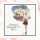 Bachelorette party napkins that showcase a glamourous red-haired bride-to-be in a chic Las Vegas setting, sipping on a cosmopolitan, with poker chips spilling out of her elegant clutch. Capture the excitement and energy of the Vegas nightlife to set the tone for an unforgettable celebration! The matching invitation can be found in my store, PageCreativeDesigns.