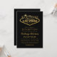 An invitation for a Las Vegas Birthday with the fabulous lighted sign in an elegant faux gold foil effect on a black background, designed with a destination birthday party trip in mind including space for optional travel and accommodations details on the back, making this an affordable and chic casino theme birthday invitation.