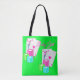 Casino themed tote bag with playing cards showing blackjack except the cards have been changes to pink and neon coloured poker chips. The text says "Lucky Girl"