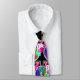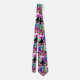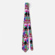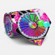 This tie is in neon colours and has playing cards and poker chips, a row of 7's, a wheel as seen on slot machines and a pair of dice on a black background.