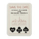 A fun and modern wedding Save the Date magnet to excite your guests for your wedding in Las Vegas! This Save the Date features graphite black bold playing card suit graphics, a modern Las Vegas skyline rendering, and fully customisable font and text on ivory cream background. On the back, you can edit for your own wedding website or more information. Perfect for a trendy modern or classic traditional event - this unique Save the Date magnet is versatile!
