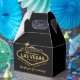 Personalised welcome to fabulous Las Vegas light sign in faux gold foil on a black gable box with custom wording on the back for creating a hangover helper welcome kit for guests at your destination wedding. The boxes are nice and small, perfect for holding some pain reliever, hydration powders, B vitamins, mints or gum, and a certificate or voucher for breakfast. The text can be changed entirely if you have a different use in mind, and several variations are available in the Paper Grape Destinations Zazzle designer store as well.