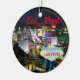 Las Vegas Christmas tree ornament may be personalized for holiday ornaments with the current year or anniversary and first Christmas together information. Design features a night time aerial photograph of the famous "Strip" with iconic landmarks as well as the famous neon welcome to fabulous Las Vegas sign.