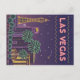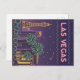 A vibrant neon-style vector illustration of the Las Vegas Strip at night, featuring glowing outlines of iconic hotels, the Stratosphere Tower, and palm trees against a dark sky filled with stars and a shooting star. The words "LAS VEGAS" are prominently displayed in neon letters at the top, capturing the city's electrifying energy.