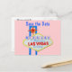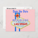 Las Vegas save the date postcard to announce your wedding in Nevada. The postcard design features a pink background with a personalised wedding sign