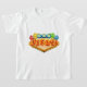 The t-shirt feels and looks great quality, a good thick cotton. It will be a little big for my son, but that means he will be able to wear it and not out grow it too soon. The print was as described on the order when personalised. True size, shape and colour T-shirt- thanks.