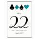 Black and teal glitter card suits look glitzy on this Vegas themed double sided white table number is a great addition to your reception decor. Personalise all the text including the table name, number and get creative with the two lines of text at the bottom with your new last names, wedding date, location and even custom table names or a personalised note about your love story.