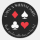 Red and white card suits are circled by customisable text making these round black stickers perfect for all kinds of projects and occasions. Use them to label favours for wedding guests, to close envelopes and more.