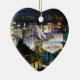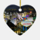 Las Vegas Christmas tree ornament shown here with a personalised occasion date. Text areas are templates that may be deleted or changed by first clicking on the blue "edit design" box to the right of the item. Design features a night time aerial photograph of the famous "Strip" with iconic landmarks as well as the famous neon welcome to fabulous Las Vegas sign. On the back is a red heart with custom text templates.