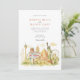 Celebrate your special day with this fun and unique wedding invitation featuring iconic Las Vegas landmarks. The front features the famous "Welcome to Fabulous Las Vegas Nevada" sign, alongside a watercolor representation of the Las Vegas skyline. Rendered in a soft, artistic watercolor style, the scene captures the excitement and glamour of the city, with the Eiffel Tower and the Statue of Liberty.